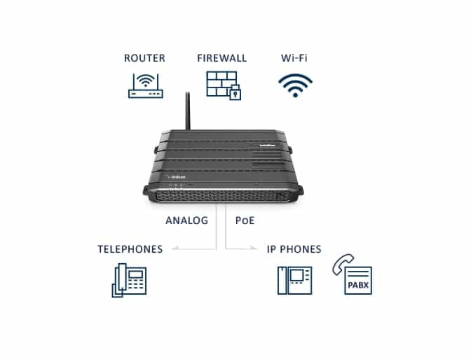 - Built-in Analog Terminal Adapter (ATA) for connecting analog phones and onboard PABX