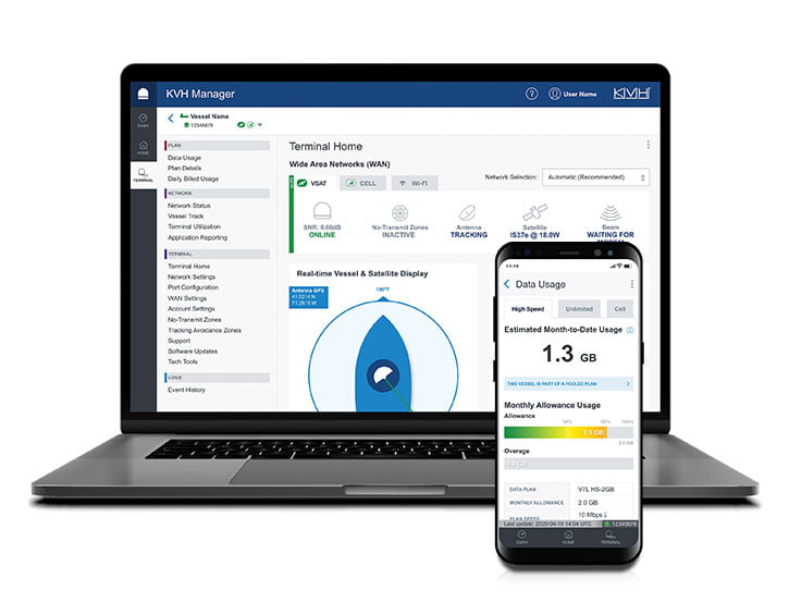 KVH ONE, together with TracNet, offers a seamless network experience delivered by the KVH ONE hybrid network.